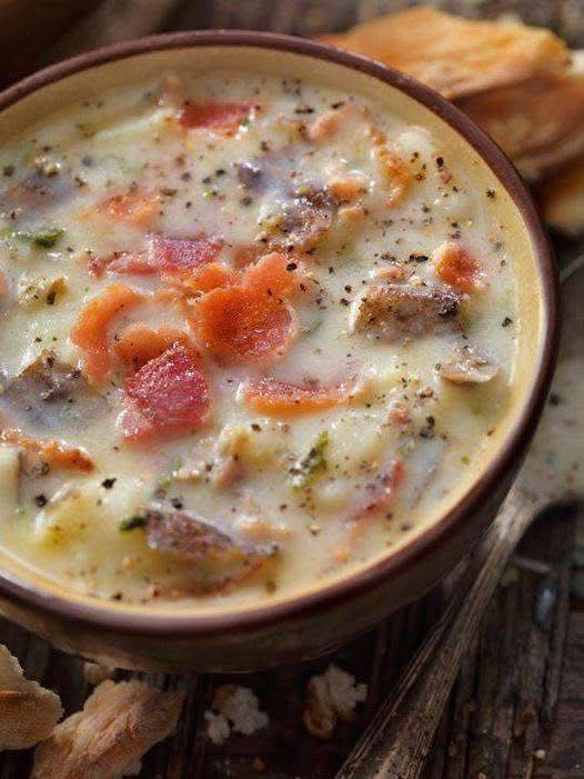 This is our Granny’s potato soup recipe and man, is it good. It’s thick and hearty, lots of chunky potatoes, plus plenty to keep it creamy and amazing. This is far from diet food, but you won’t even care about the calories once you try it, you’ll see! Bacon begins and ends this recipe, so its flavor is infused throughout the whole soup. That, along with potatoes, onion, celery and garlic make up the crux of this soup, but what makes it really stand out are the cream cheese, sour cream, cheddar cheese and half-and-half that go in at the end.