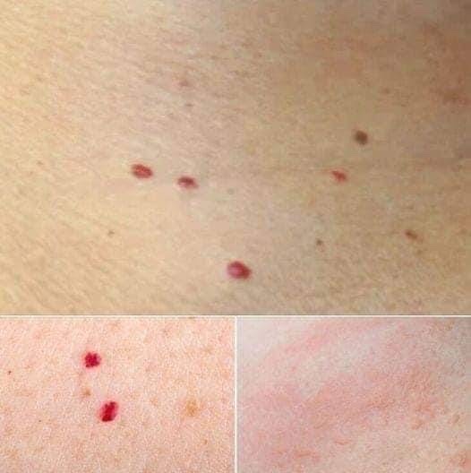 issues. Cherry angiomas are raised red bumps from blood vessel overgrowth, common in older adults. Heat rash occurs when sweat is trapped, causing itchy spots. Allergic reactions and infections like folliculitis or cellulitis can also lead to redness.Other causes include impetigo, a contagious bacterial infection, vasculitis (blood vessel inflammation), and hemangiomas, which are birthmarks.Home remedies include aloe vera gel, coconut oil, or dandelion root tea. If red dots worsen or change, consult a doctor and maintain a healthy diet.