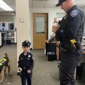 A Little Girl in Uniform Walks Into a Police Station I was finishing my shift report, half-asleep, coffee gone cold, when the door buzzed open. Tiny shoes…
