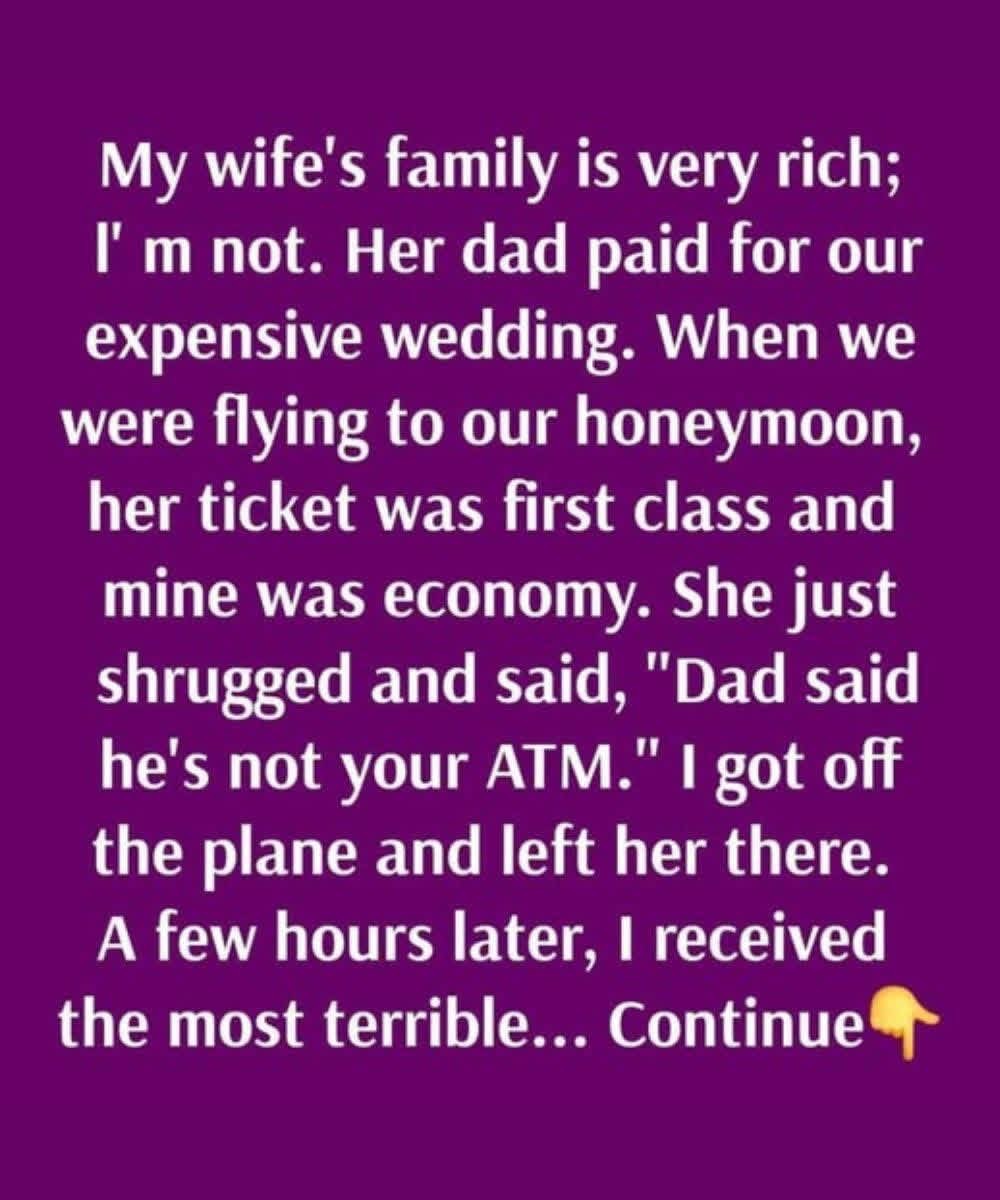 His new wife came from a wealthy family, and though he had always admired her independence, he couldn’t ignore the unspoken pressure to meet her family’s expectations. That pressure finally erupted during their honeymoon – a trip meant to celebrate love but instead revealed the harsh gap between them.