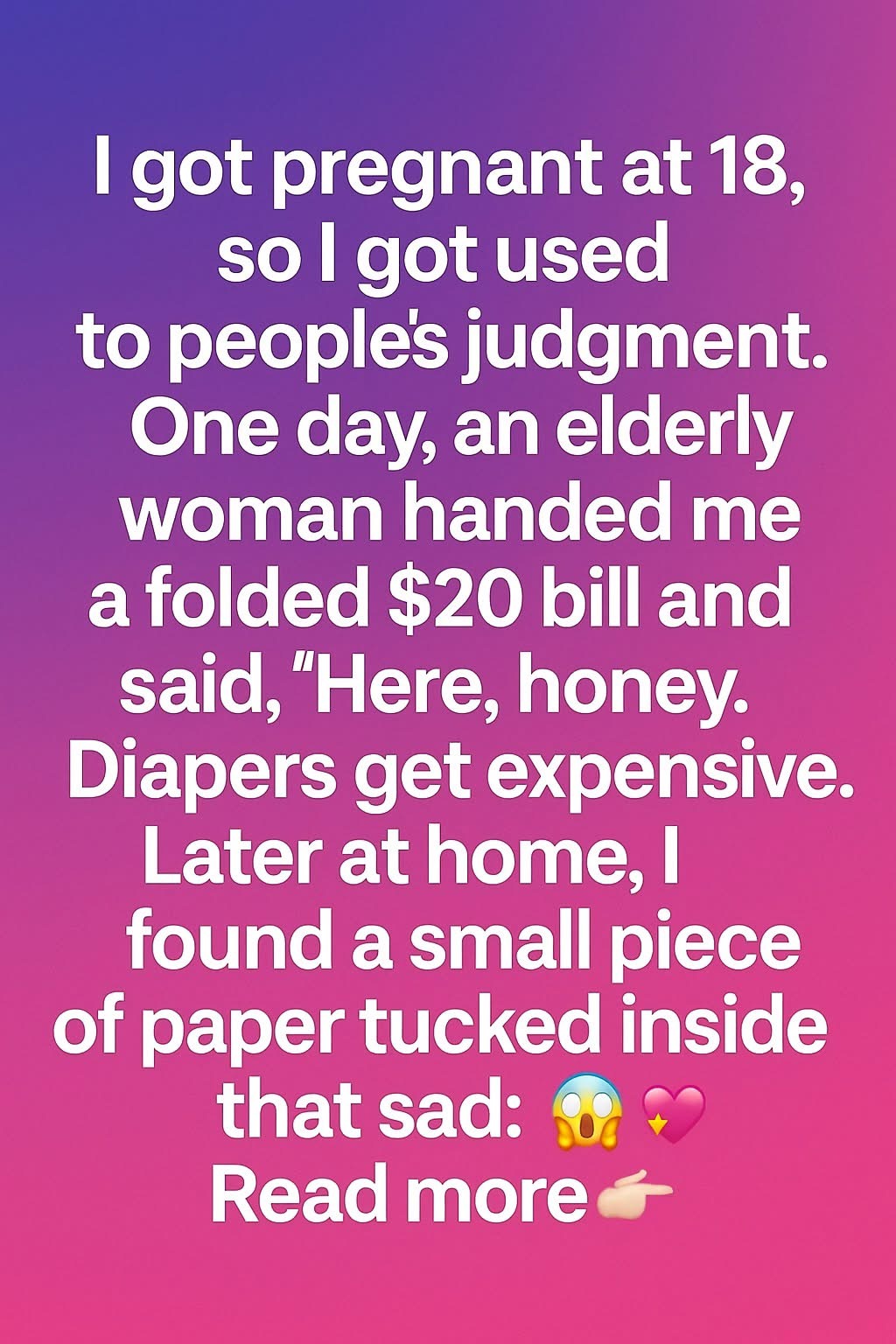While I was out with my baby, an elderly woman approached me. She pressed a folded $20 bill into my hand and said warmly, “Here, honey. Diapers get expensive.” Her words were simple, but her kindness touched me deeply.When I got home, I unfolded the bill and found a small piece of paper tucked inside. In neat handwriting, it read: “You’re stronger than you think.”