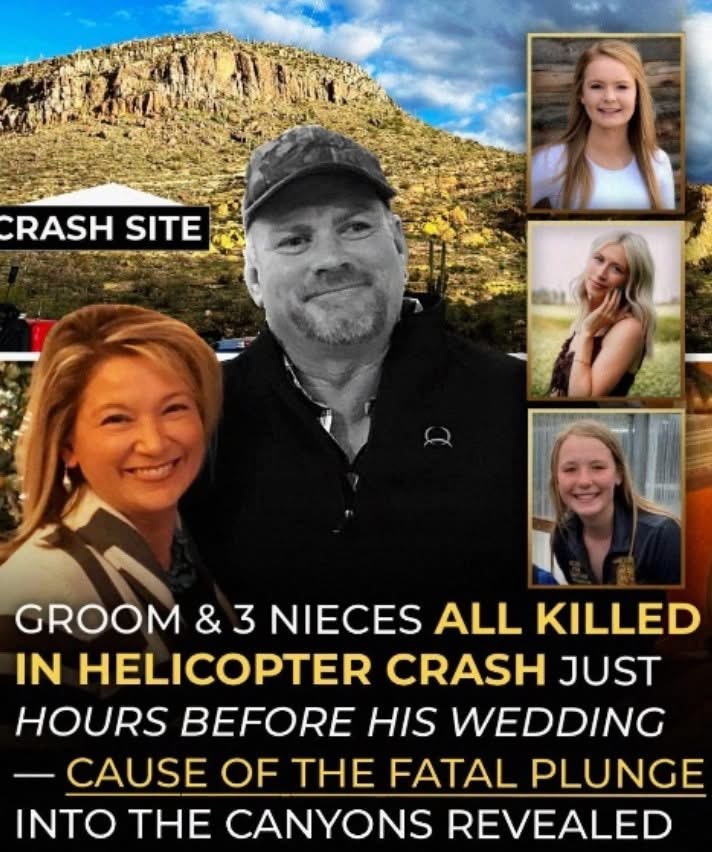 A scenic flight meant to celebrate a special day ended in heartbreak in the Arizona mountains. Four family members, including a groom-to-be and his three nieces, died in a helicopter crash near Superior, Arizona, on the day of his wedding.
