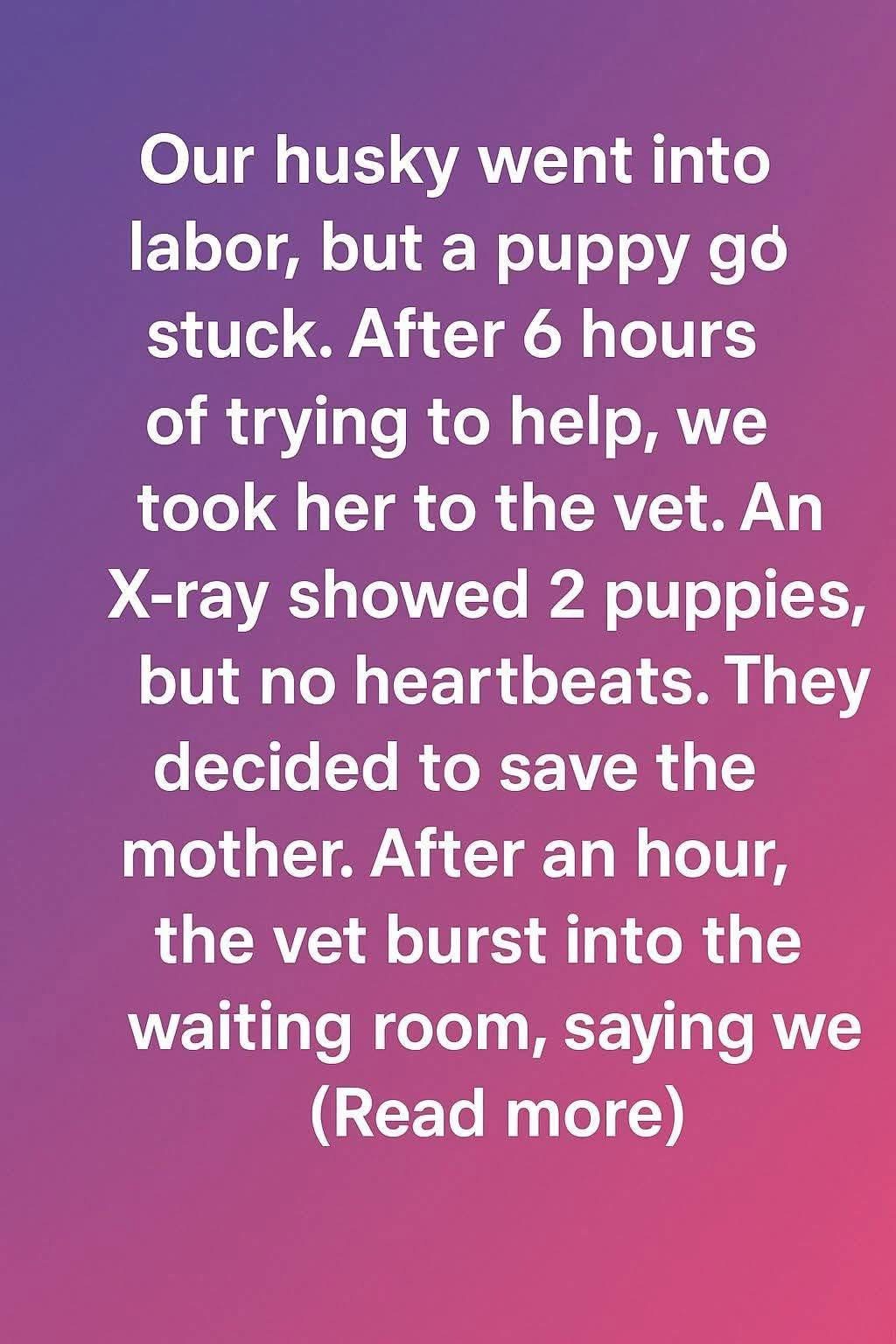 Our husky went into labor, but a puppy got stuck. After six exhausting hours of trying to help, we realized we couldn’t do it alone. With heavy hearts, we rushed her to the nearest emergency vet clinic. The X-ray revealed two puppies inside, but there were no signs of a heartbeat. The vet gently explained that they needed to act fast to save our husky, Luna.