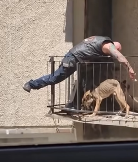 He was holding a bowl of food up to a starving dog that had been trapped on that balcony for six days.