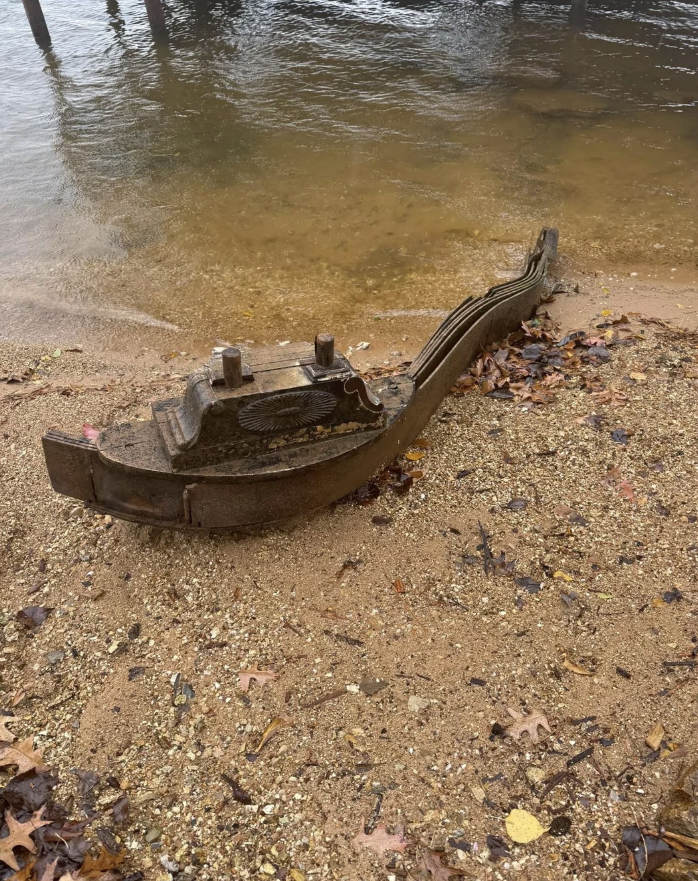 Submersion helped protect the harp. The wood remains waterlogged and cracked but recognizable. Every bolt and joint has developed rust, yet the instrument still reflects the craftsmanship of 19th-century American piano design. Nearly 150 years later, it has withstood the elements, highlighting its durability.