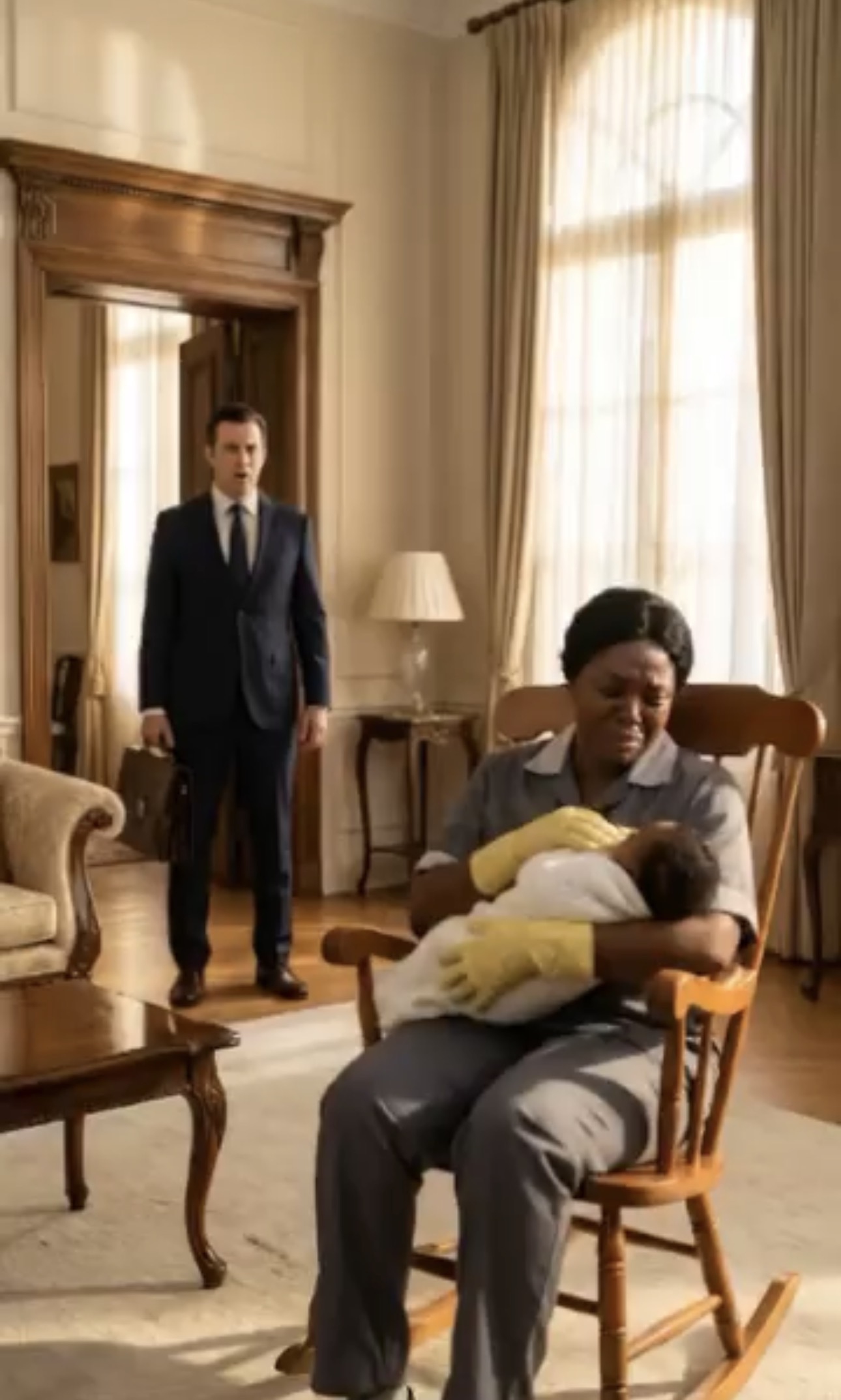 Carmen — the woman who had cleaned his house, folded his laundry, and cared for his family for five years — was seated in the rocking chair, holding his three-month-old son close to her chest.