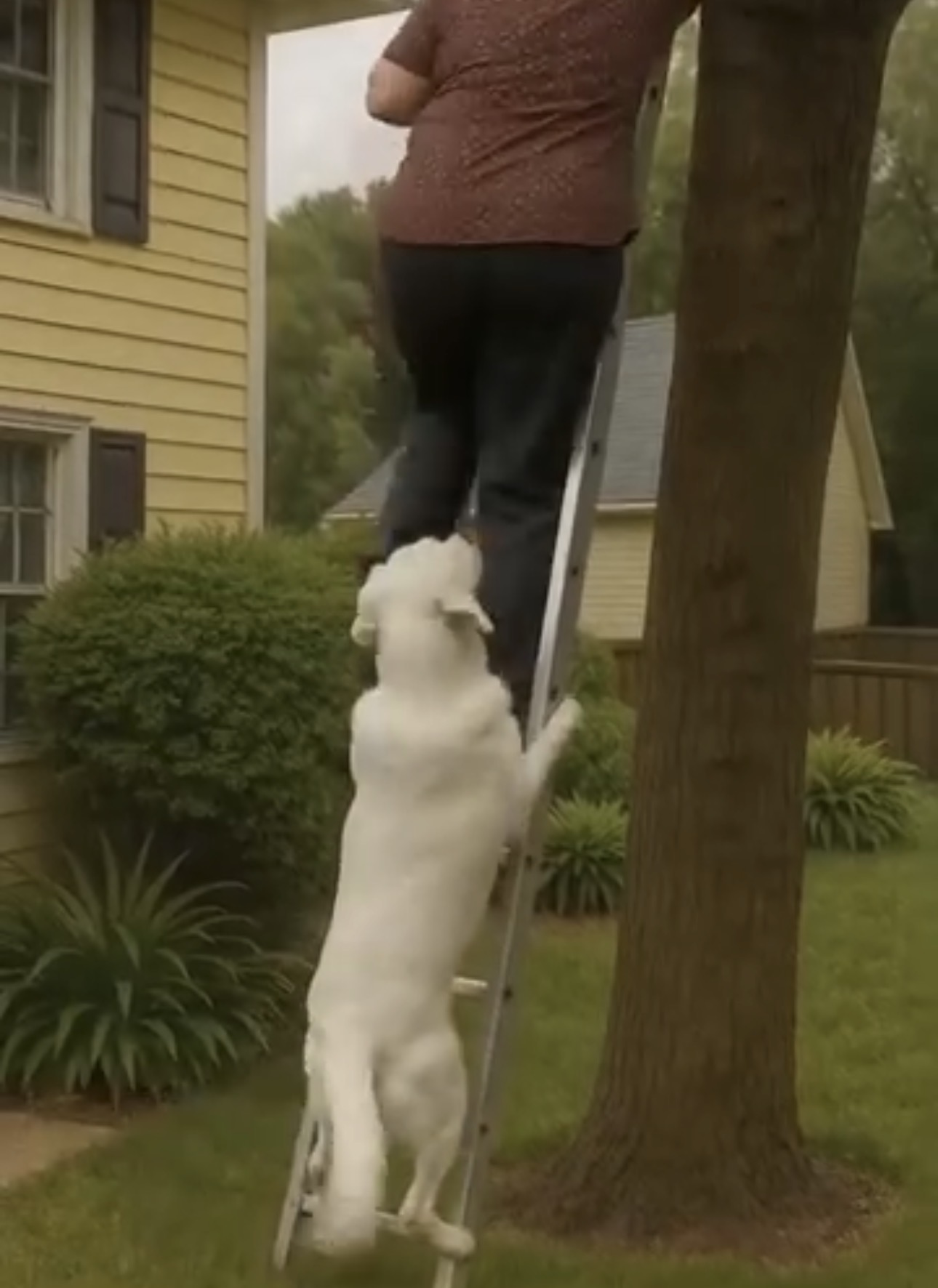 I placed the ladder against the trunk and tested its steadiness. As soon as my boot touched the first rung, Max froze. His entire body went rigid, his eyes locked on mine with a tension I hadn’t seen before. I dismissed it with a quick laugh. “Relax, buddy. I’ll be down in a minute.” I climbed another rung, and that’s when I felt the tug. Not a gentle nudge—this was a sharp, insistent pull at the cuff of my trousers. I looked down, startled, and saw Max clamped onto the fabric, teeth gripping hard enough that I nearly slipped. “Hey! What’s gotten into you?” I said, trying to shake him off without hurting him. He wouldn’t let go. He braced himself, digging his paws into the dirt, eyes wild with a warning I didn’t understand.