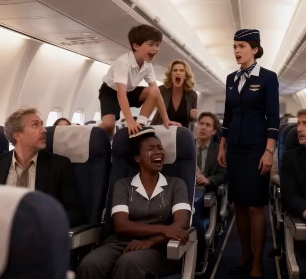 The boy’s mother dismissed Amara’s request and openly blamed her for the disturbance. When a flight attendant stepped in to help, the mother’s behavior worsened. Cabin tension grew, and other passengers became visibly uncomfortable.