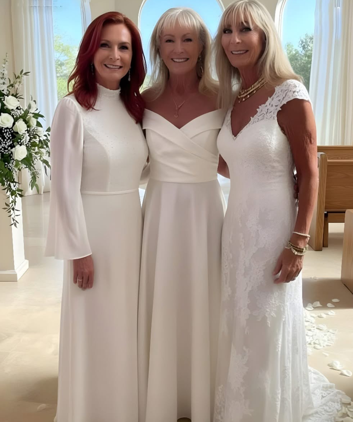 Not cream. Not ivory. Not a soft pastel that could be mistaken in certain light. It was bright, unmistakable, look-at-me white—floor-length gowns with elegant details, like they’d stepped out of a bridal boutique on purpose.