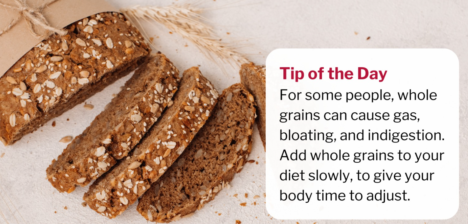 Whole grains are healthy, but for some people they can cause gas and bloating. Adding them to your diet gradually can help your body adjust more comfortably.