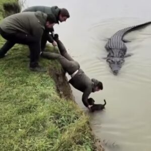A dramatic moment near a river has captured attention after a small puppy was nearly attacked by a crocodile. The predator was approaching the helpless puppy, ready…