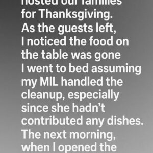 The next morning, I opened the fridge and froze in shock. Every dish I had spent hours preparing—turkey, stuffing, pies, vegetables—was gone. Instead, dozens of neatly packed…