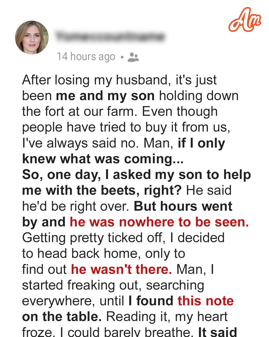 Unaware of Joey’s plans, Flora spent her day on the farm, waiting for the son who promised to help but never showed.
