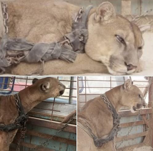 I love animals, and I can say with certainty that being chained up in the back of a pickup truck is no a place for an animal, especially not a full-grown mountain lion.