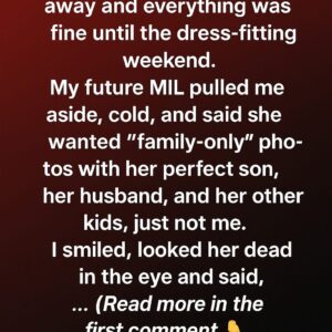 Our wedding is a month away and everything was fine until the dress-fitting weekend. My future MIL pulled me aside, cold, and said she wanted “family-only” photos…