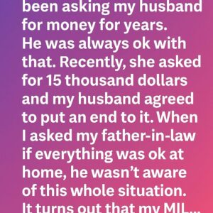 My mother-in-law had been asking my husband for money for years, and he always agreed without question. It started with small amounts, but over time, her requests…